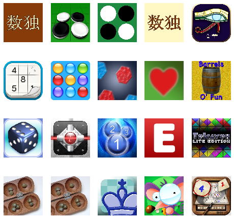 数据中的Icon URL列包含游戏APP的图标,我们需要根据图片的url链接,通过爬虫采集的方式进行获取,在这里选取其中的前20个进行展示。